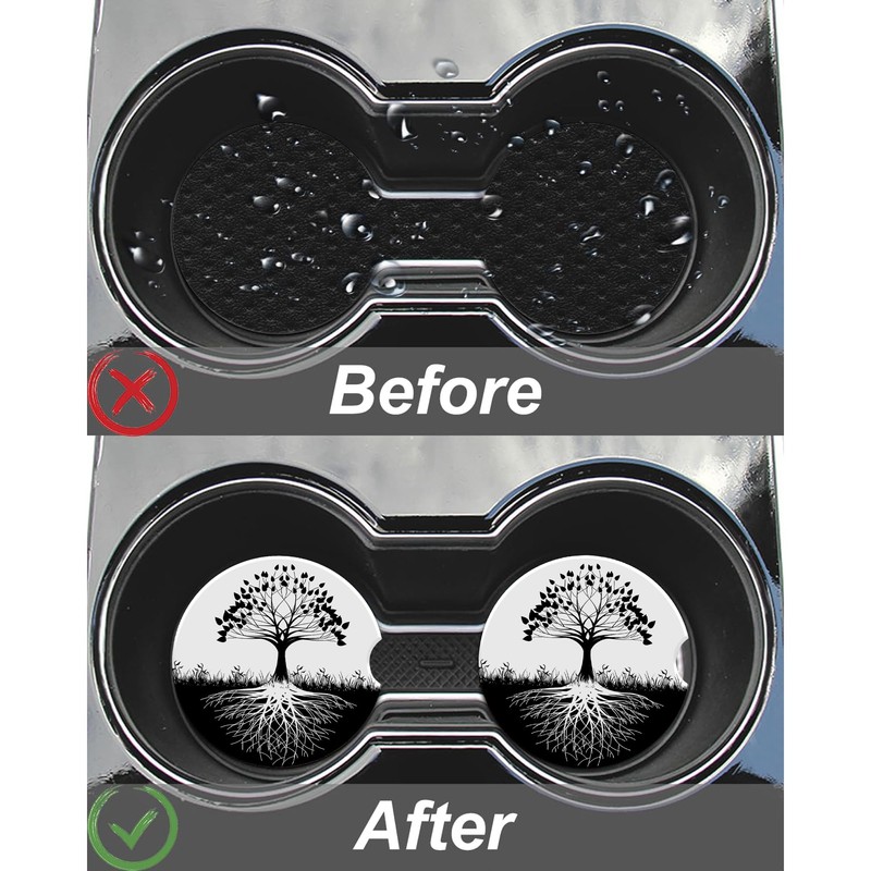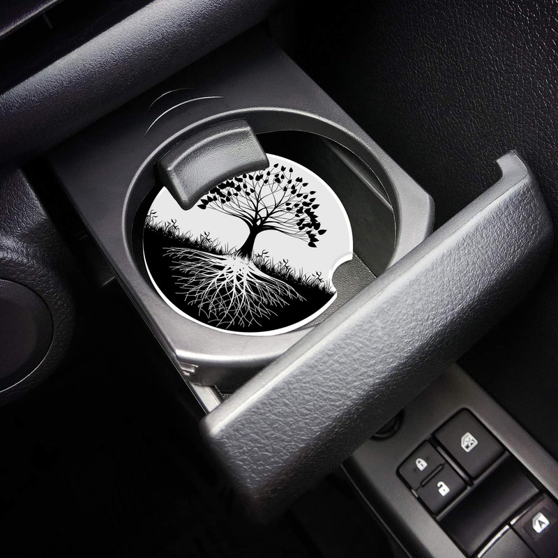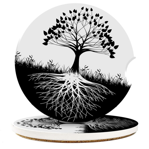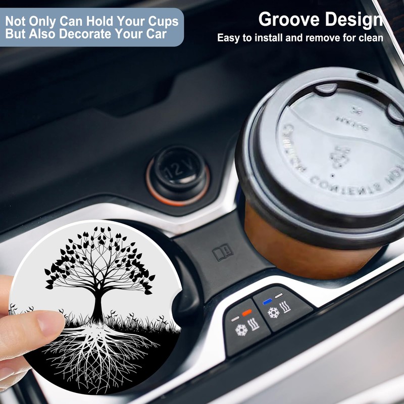 Neidius Car Cup Holder Coasters,Tree Roots Car Coaster for Cup Holders Insert Ceramic Drink Mat Car Interior Decor Accessories 2Pcs 2.56 Inch