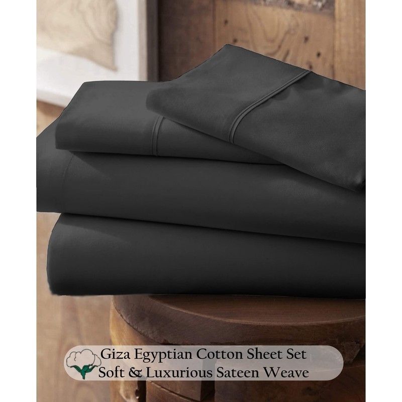 - 4 Piece GIZA EGYPTIAN QUEEN Sheet Set Includes: 1 Flat Sheet 90" Wide x 102" Long, 1 Fitted Sheet 60" Wide x 80" Long Fits 10-Inch Deep Pockets, and 2 Pillowcases 20" Wide x 30" Long. Comes in many attractive colors to suit your bedroom décor. Fully elasticized fitted Sheets with 10 Inch deep pockets are generously sized to fit deep and pillow-top mattresses.
