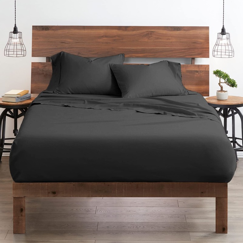 Neighbourhood Home My-100%-Certified-Giza-Cotton-Pillow-Sheet, Giza Egyptian Sheet Set Queen Size, Soft Sateen Weave, Breathable Fabric, Fits Upto 10-Inch Deep Pocket - Queen, Dark Grey