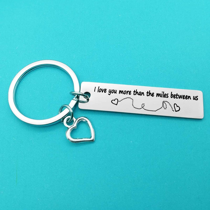 - Long Distance Relationship Gifts: The keychain engraved with "I Love You More Than The Miles Between Us”. Great long distance gift, to tell her/him how much you love her/him when they not at your side.