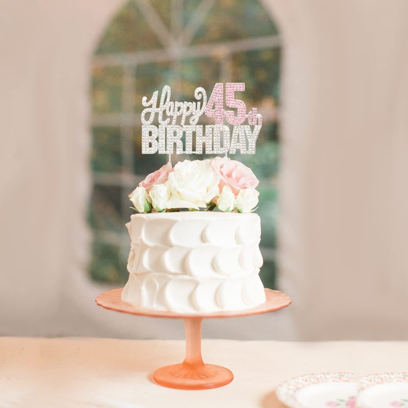 - 【Tamaño del producto】: 15 cm de ancho y 18 cm de alto (con palo), hermosos diamantes de imitación brillantes, la decoración para tarta de cumpleaños 45 realmente destacará en tu día especial