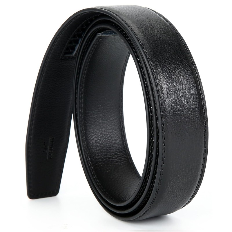 Nelbons Men's Leather Ratchet Belt Strap Only 35mm 1 3/8,Leather Belt without Buckle replacement belt (A-Black-3, 130CM/UP TO Waist:43'')