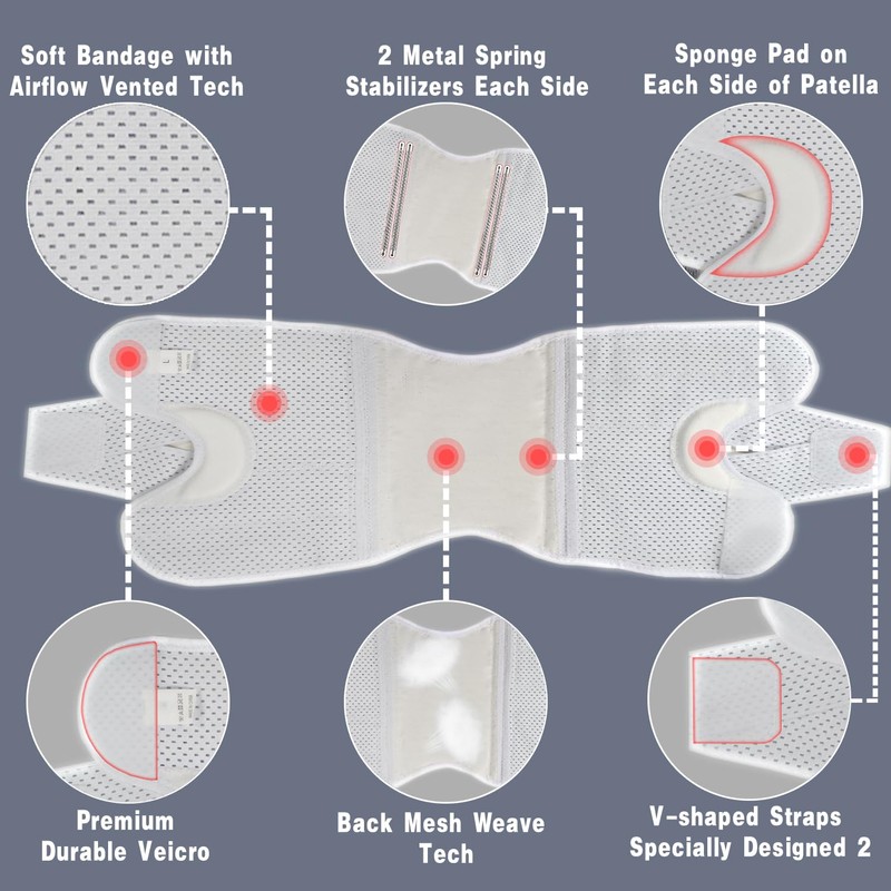 NELLHOMY Professional Knee Support, Knee Support with Open Patella Pads & Spring Side Stabilisers, Adjustable Knee Support with V-Shaped Band for Arthritis Injury Recovery (White, XXL)