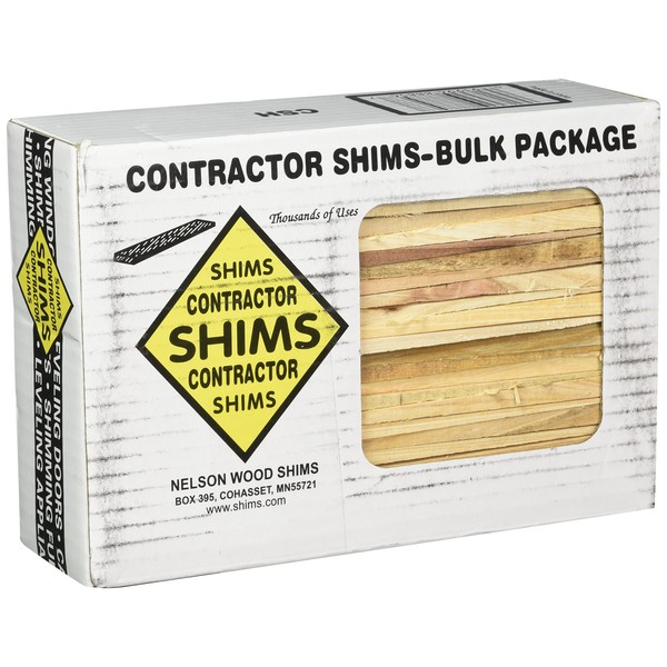 These shims are easy to cut and have an excellent snap. Shims are 8" long and tapered from 5/16" down to 1/32". 56 shims per job pack, 10 job packs per master display box and 12 master display boxes per pallet. Shims fit easily into a tool belt.