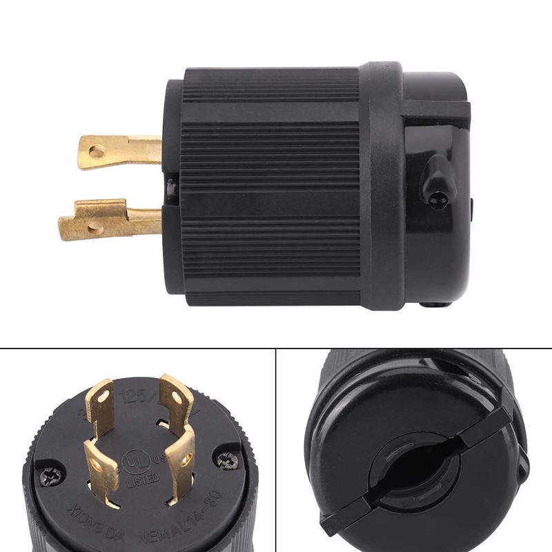 This plug features 3 pole 4 wire, NEMA L14-30P, 125V-250V 30A, Locking Plug. Great for connecting to a generator with a 125V-250V volt outlet.Chemical- and impact-resistant housing, quick installation.