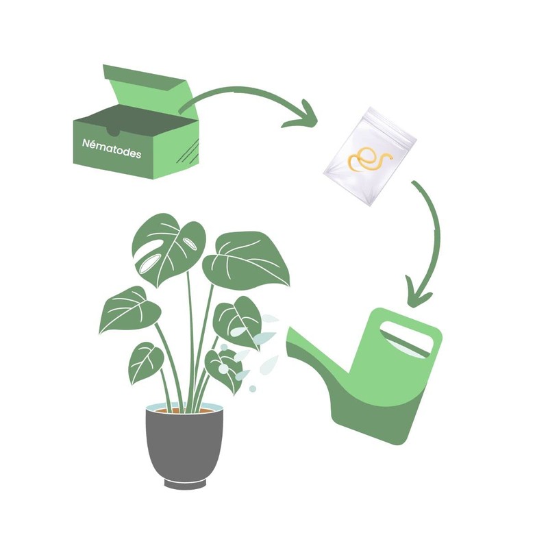 Nematodes move in the soil and search for the larvae of pests to repel them. When they find them, they penetrate their bodies through the natural ways and multiply within, leading their death within a few days.