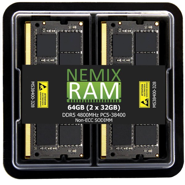NEMIX RAM 64GB (2X32GB) DDR5 4800MHZ PC5-38400 2Rx8 1.1V 262-PIN Non-ECC Unbuffered SODIMM Laptop PC Memory KIT Compatible with Dell XPS 15 & Dell XPS 17 Laptops
