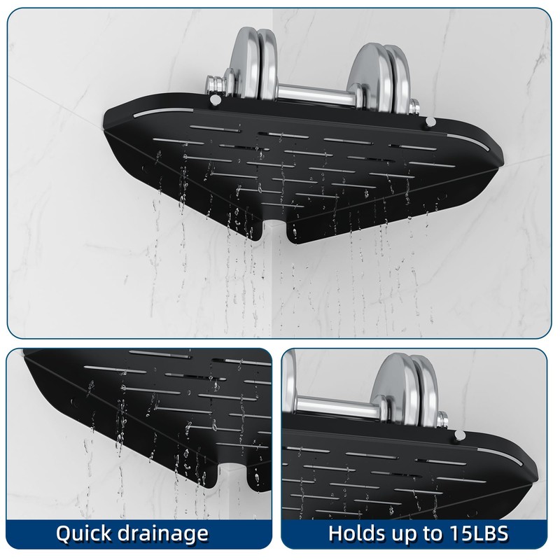 - Sturdy and durable: thanks to its sturdy stainless steel and hollow construction, this shower shelf not only holds up to 10 kg, but also drains quickly and air dry to keep you dry and clean!