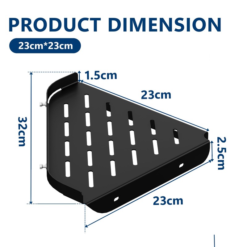 - 2 Installation Methods This black corner shelf is very easy to install, just use the included strong adhesive to assemble it quickly without drilling holes. If you want to make it safer, you can drill holes for installation.