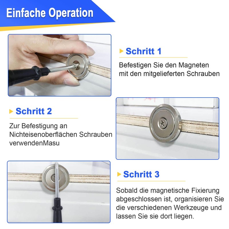 - Multi-purpose magnets: magnets are strongly used to hang and attach various metal tools, organise different metal tools and save more living space. Magnets are ideal for wood workshops, garages, tool rooms, cruise ships, garages, kitchens, DIY work and more.