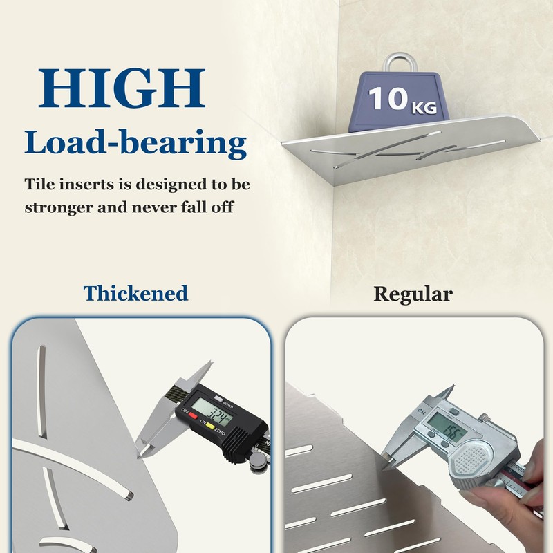 - High quality: the corner shower shelf is made of 3 mm thick 304 stainless steel, rust and corrosion resistant, durable and easy to clean, suitable for use in damp bathrooms and kitchens