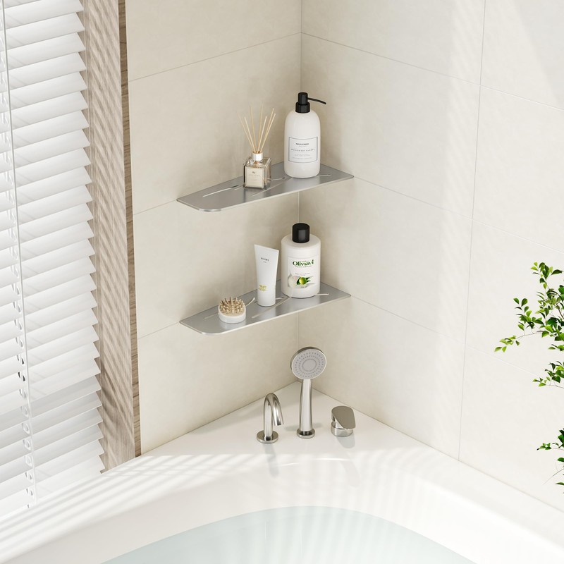 The stainless steel shower shelf is easy to install according to the instructions: just cut the tiles through, embed the corner shelf into the wall and fix it with silicone or other sealant. Wait 48 hours and it is ready to use.