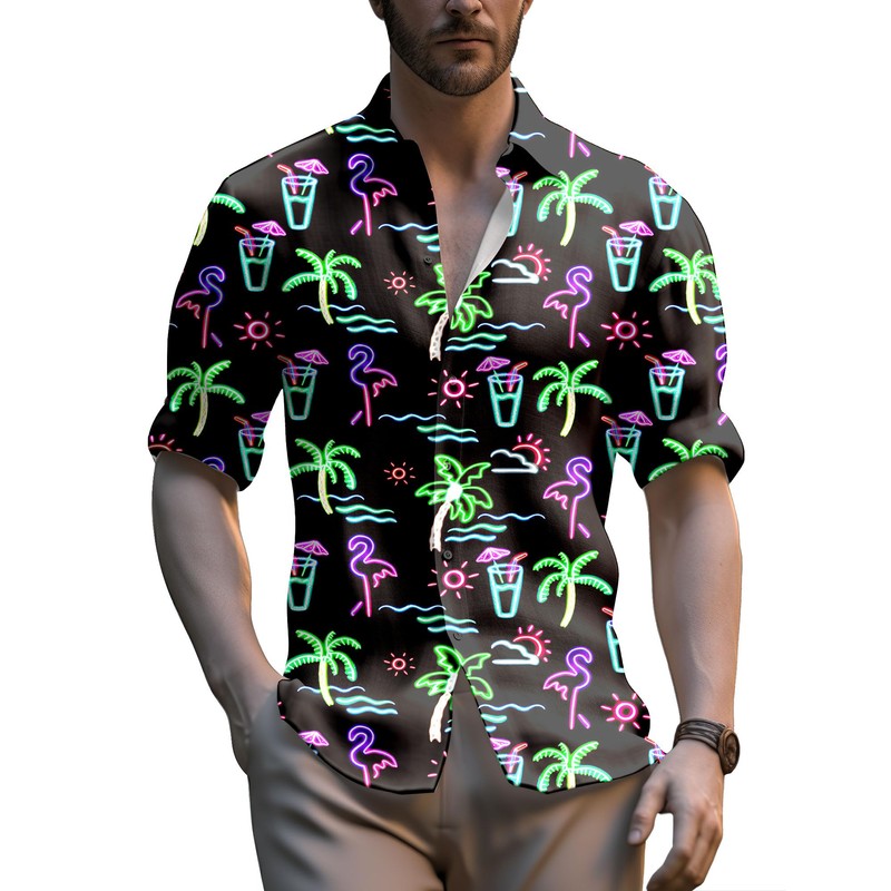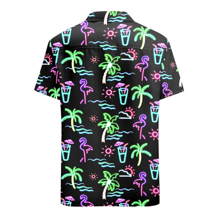 Neon Flamingo Shirt: Men's 80s Disco Button-Up Hawaiian Shirt