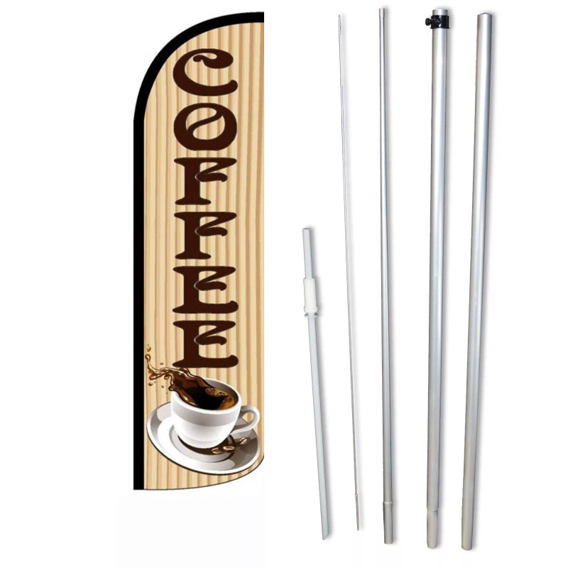 Neoplex Coffee Flag Flutter Feather Banner Swooper Wide Windless Bundle Kit