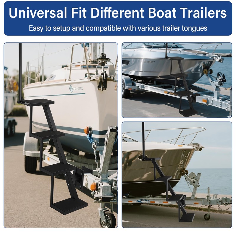 - Non-Slip & Safe Access: The boat trailer steps for the tongue are equipped with non-slip mats and a handrail to reduce the risk of slipping when getting in and out of your boat; In addition, each step size is 7.1" x 11.8", providing a larger foothold, ensuring safety and comfort