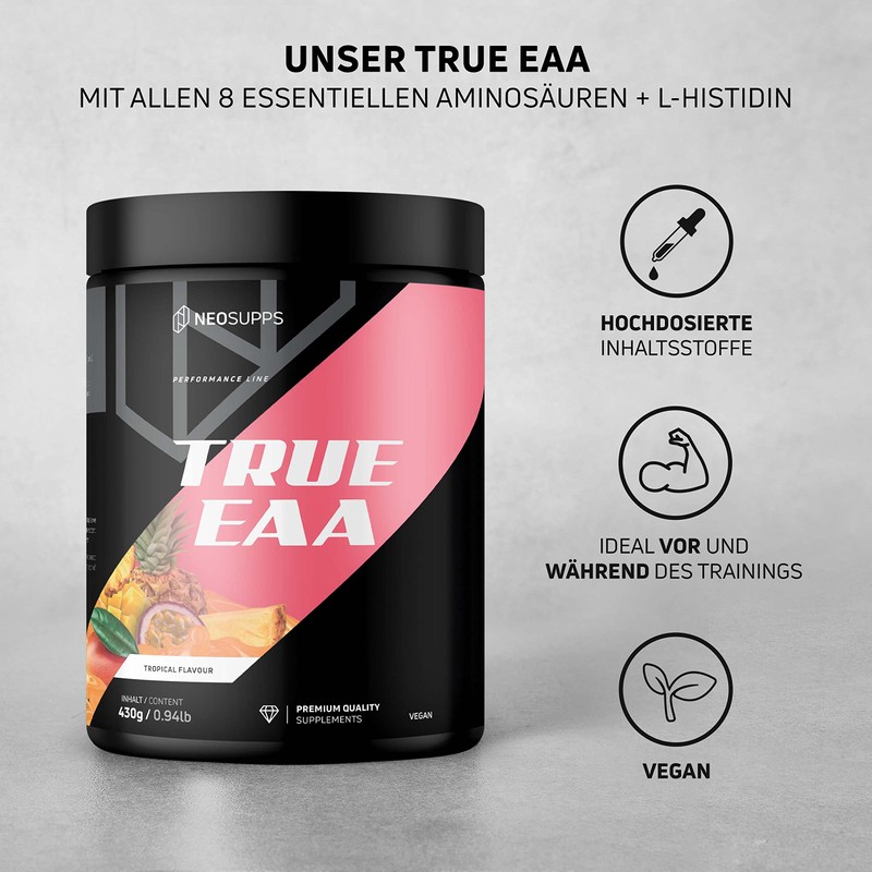 - Perfect during training: True EAA essential amino acids are ideal before and during training to provide your body with the necessary nutrients and get the most out of you