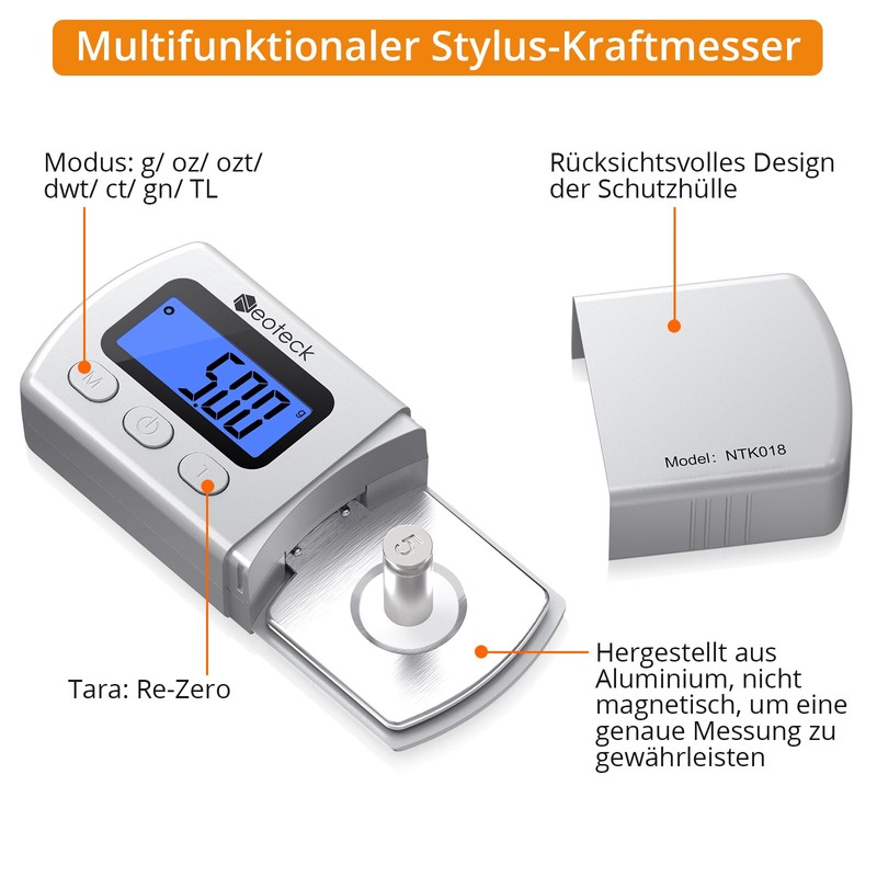 For MM/MC/MI and piezoelectric pickups; unmegnetic, regardless of magnetic field and with accuracy; a precise tester for calibrating the force of tonearm. Precise tone arm strength is essential to ensure good playback and the life of your records and pickup. Too much force leads to shortened life of the records and the pickup while too little force causes the groove to strain. Under such circumstances, the turntable does not perform well.