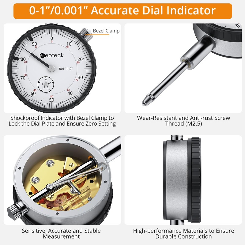 - 【Stable Tight Locking Plier】Neoteck runout gauge set comes with 7" tight locking plier, which can be firmly fixed on the parts that need to be measured, reducing external interference and unnecessary movement.And the tight locking plier can ensure that no errors occur during measurement and improve measurement accuracy.