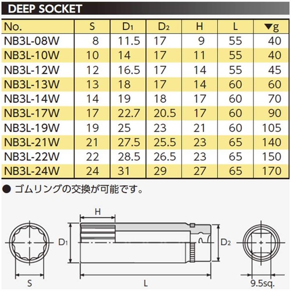 Nepros 10mm 3/8"sq. Deep Socket Wrench 12pt.