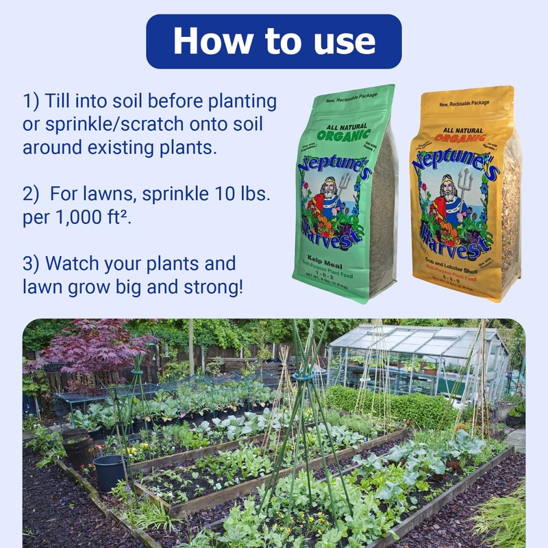 - Combine for Maximum Growth: Pair Neptune's Harvest Crab and Lobster Shell Plant Food with the Kelp Meal to supercharge your garden! This dynamic duo boosts soil health by adding organic matter, enhancing moisture retention, and delivering essential nutrients; Strengthen roots, promote vibrant growth, and build a resilient garden foundation - give your plants the ultimate support they need to thrive!