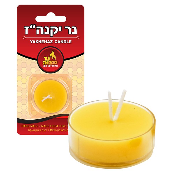 Ner Mitzvah Yaknehaz Tealight Candles - Pure Beeswax Yaknehaz Havdalah Tea Light Candles - Handmade Multi Wick Tea Candle - 1 Pack