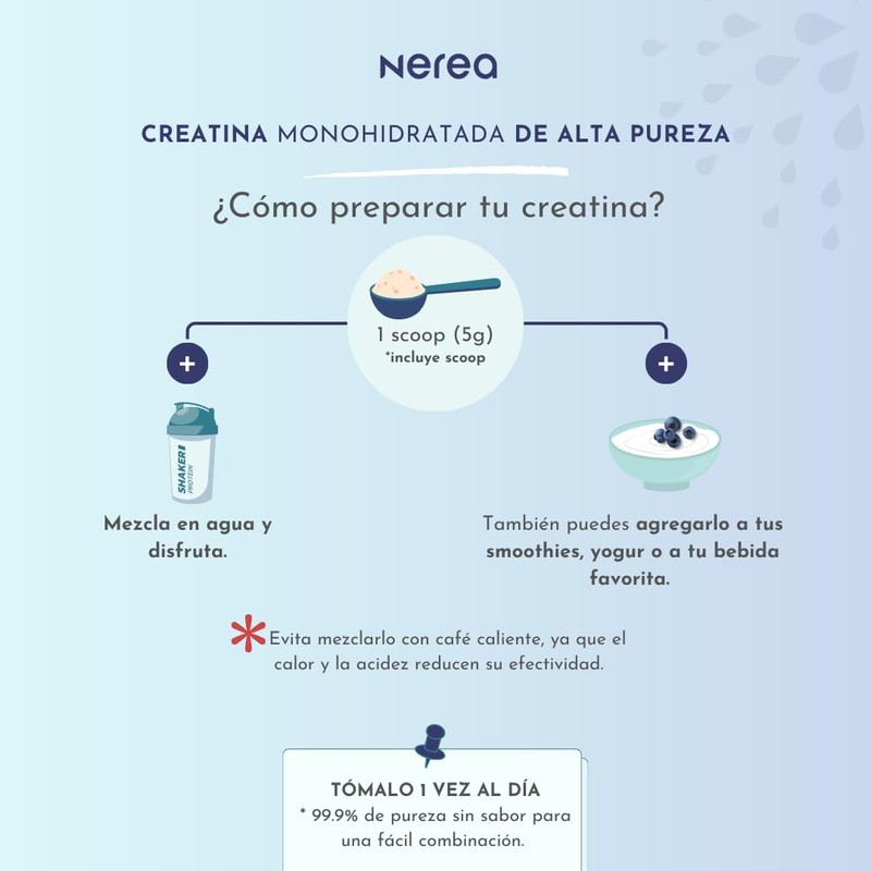 Nerea Creatina monohidratada ALTA PUREZA en polvo, sin sabor, sin rellenos, preworkout/alto rendimiento / 3 meses.