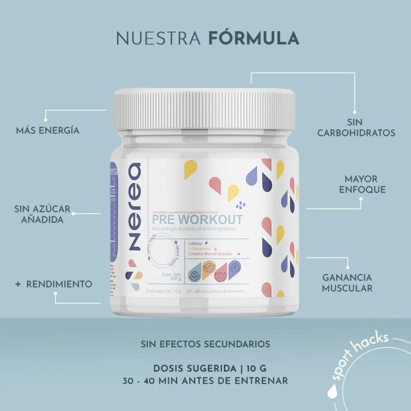 Nerea Pre Entreno Natural / Sabor Frutos Rojos / 1 Mes