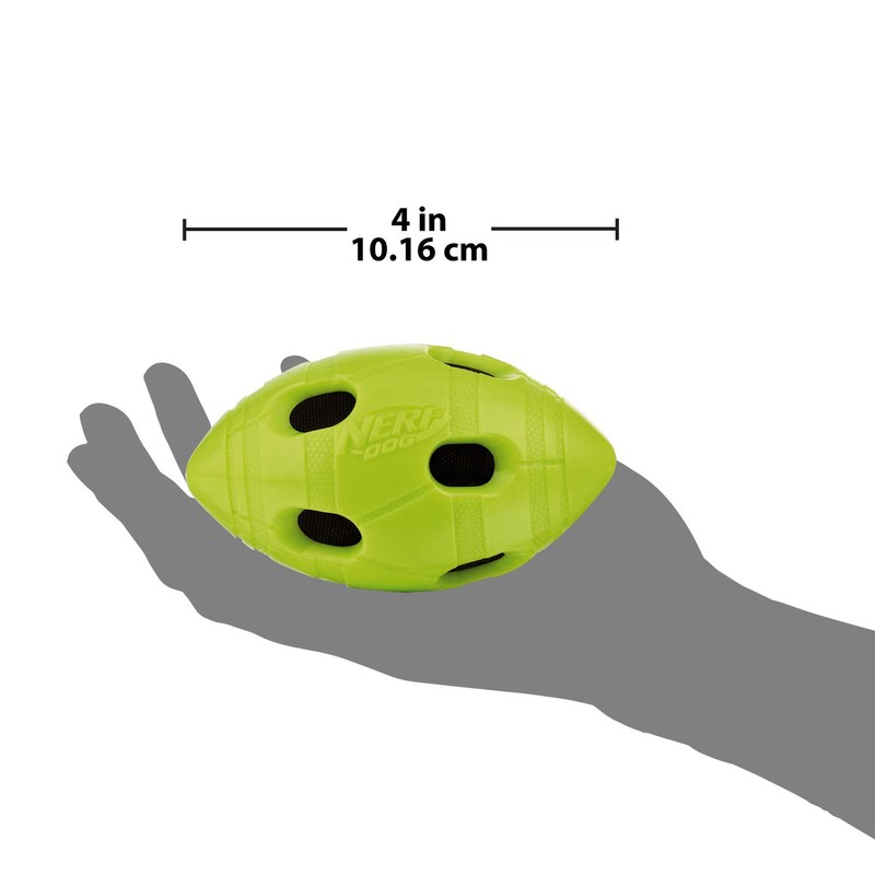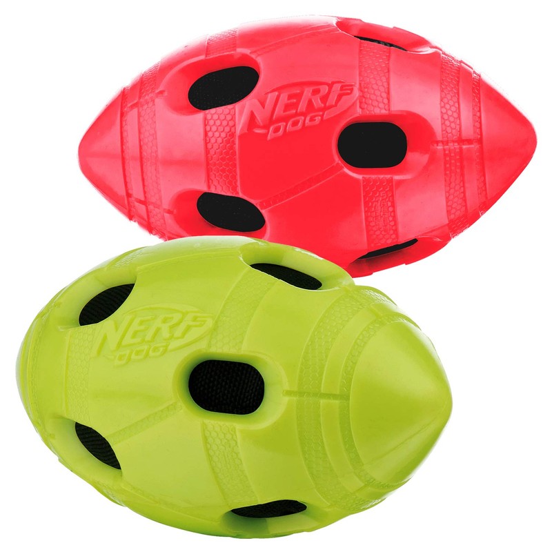 Nerf Dog Bash Football Dog Toy with Interactive Crunch, Lightweight, Durable and Water Resistant, 4 Inches for Medium/Large Breeds, Two Pack, Green and Red
