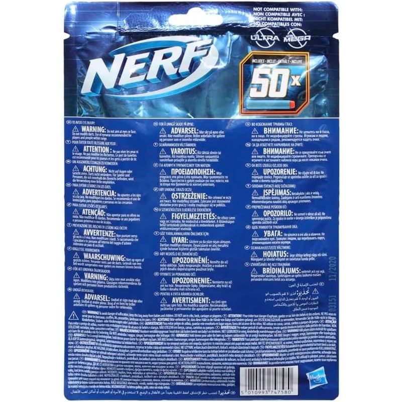 - Refill pack with 50 darts: Includes 50 Nerf Elite 2.0 darts, so you can always keep your hands on exciting Nerf battles and missions. Nerf Darts have been tested for performance and quality.