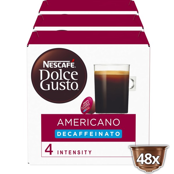 NESCAFE Dolce Gusto Americano Decaf Coffee Pods - total of 48 Coffee Capsules - Decaffeinated Coffee (3 Packs)