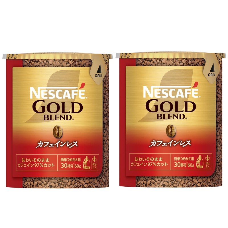 Nescafe Gold Blend Caffeine-less Eco & System Pack, 2.1 oz (60 g) x 2 Bottles, Soluble Coffee, 60 Cups, Refill