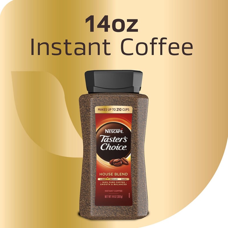 • Savor the rich flavor of NESCAFE® Taster's Choice Instant Coffee House Blend (14 oz.) With Taster’s Choice, you can make a delicious brew in mere minutes. Enjoy a cup with your breakfast to get your day off to a great start.