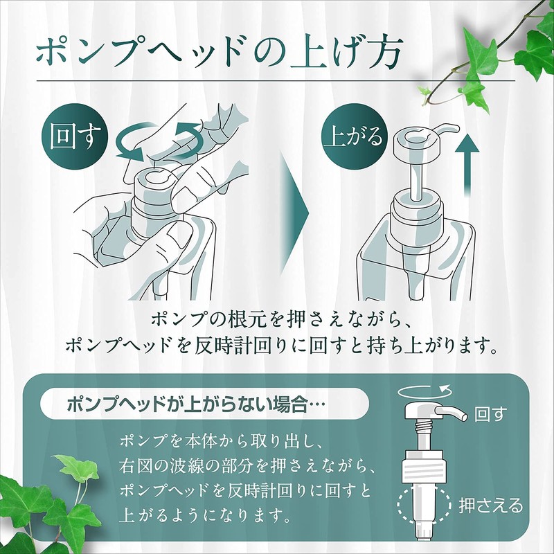 Pursuing Easy Pressure: The pump head is extremely easy to press. 1 push 3-4ml No stress to push over and over again, no waste. Simple shape for excellent stability. One of the points is that your hands are wet or when the remaining power is reduced and it becomes lighter. Safe for homes with children.