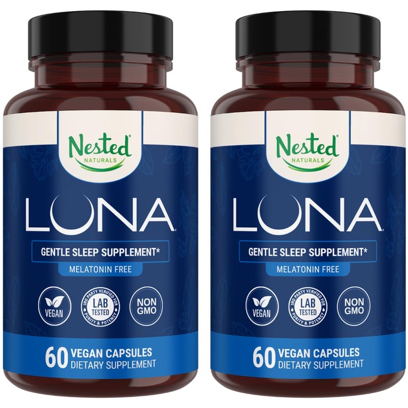 Nested Naturals Nested Naturals Luna Melatonin-Free Pack of Two, Bedtime Supplement for Adults, Herbal Nighttime Sleeping Capsule, Valerian Root with Chamomile, Lemon Balm, Non-GMO, Gluten-Free