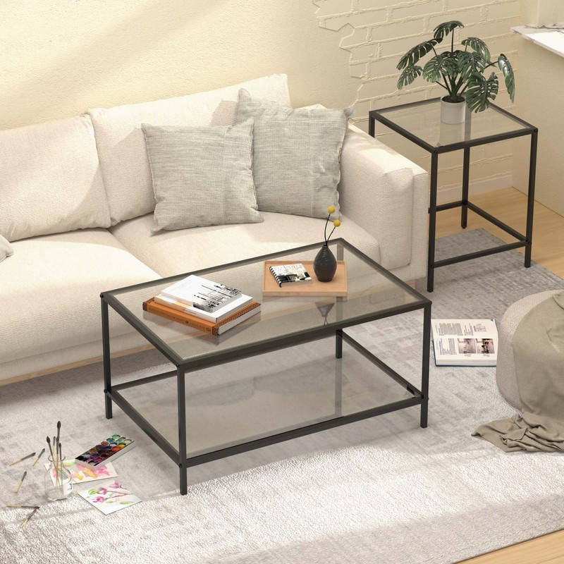 - 【Rliable Material & Structure】This coffee table is made of high quality Made of 6mm Explosion-proof tempered glass and sturdy metal frame. With rational structure it offers a durable and stable daily use to last years. 2 tier open glass shelf design the end table can store your book,magazines, board games,save space!