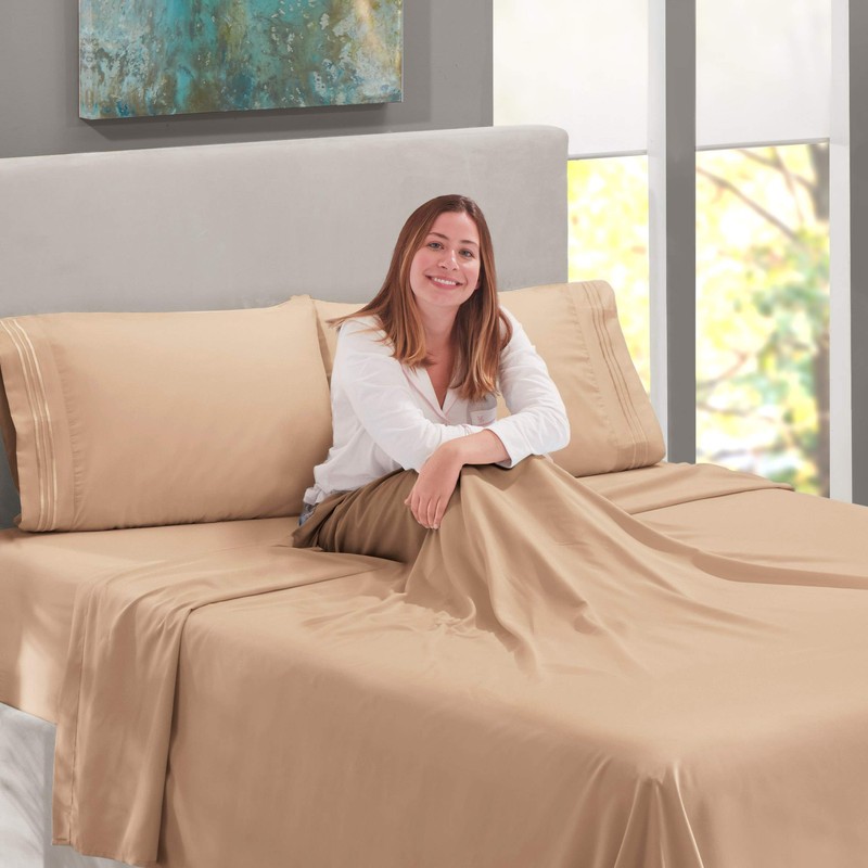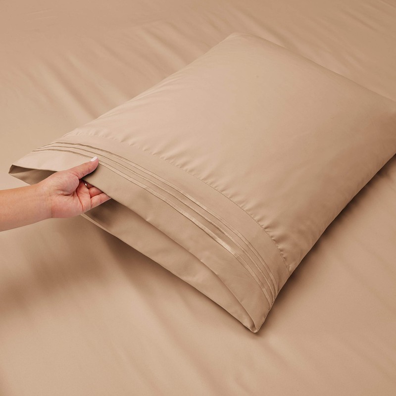 Nestl Bedding Soft Sheets Set â 4 Piece Bed Sheet Set, 3-Line Design Pillowcases â Easy Care, Wrinkle Free â Good Fit Deep Pockets Fitted Sheet â Full XL, Taupe