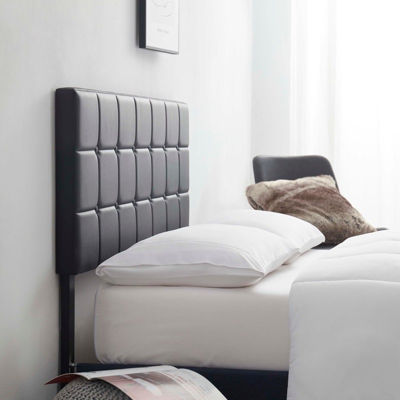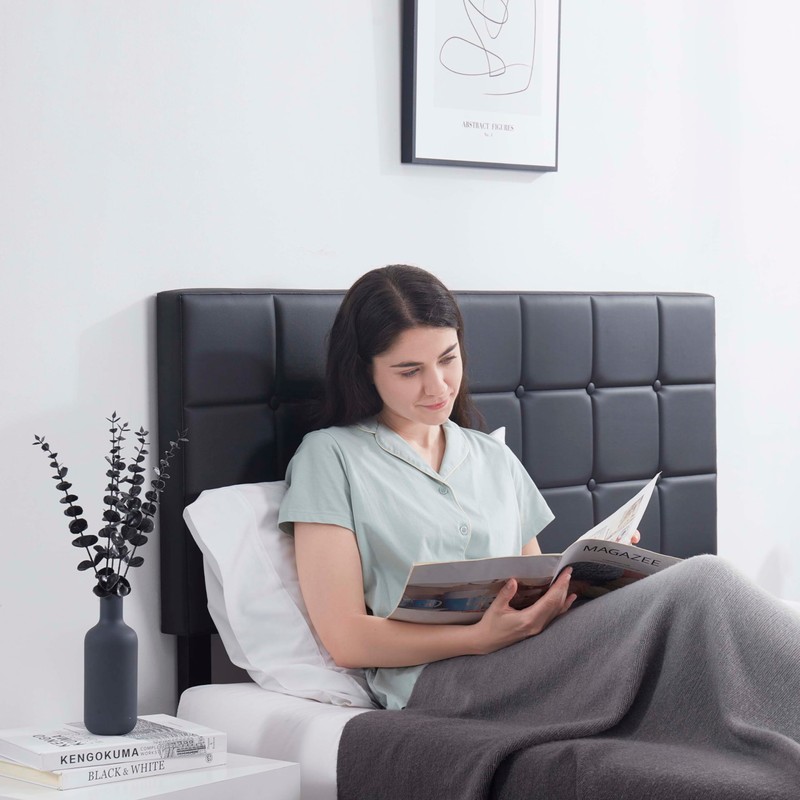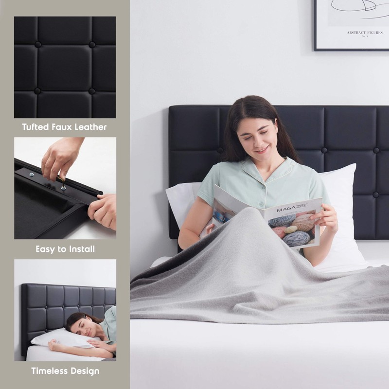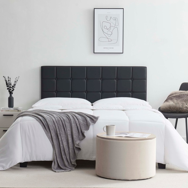 - Button-Tufted Square Design: This full size headboard only is upholstered with faux leather in an elegant design that will transform your bedroom. Our plush, supportive full bed headboard is perfect for leaning on while relaxing in bed.