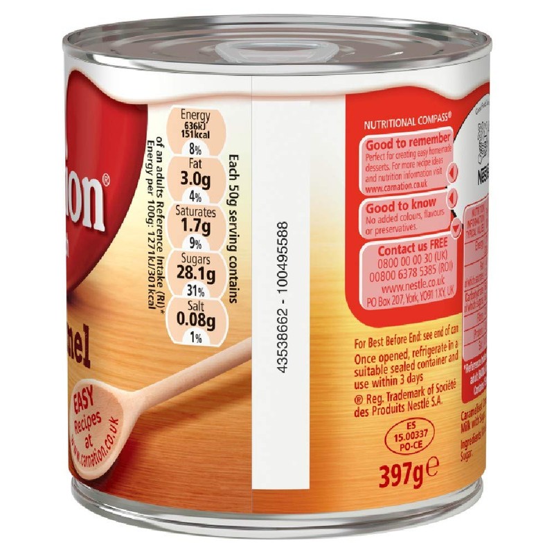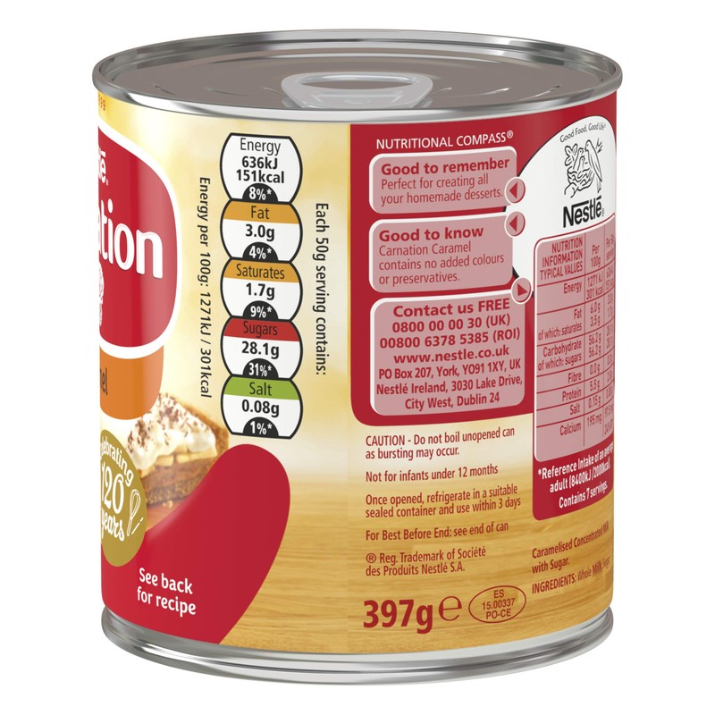 - Each tin contains 397 g of Carnation caramel, an ideal ingredient for banoffee pie and other caramel-based favourites