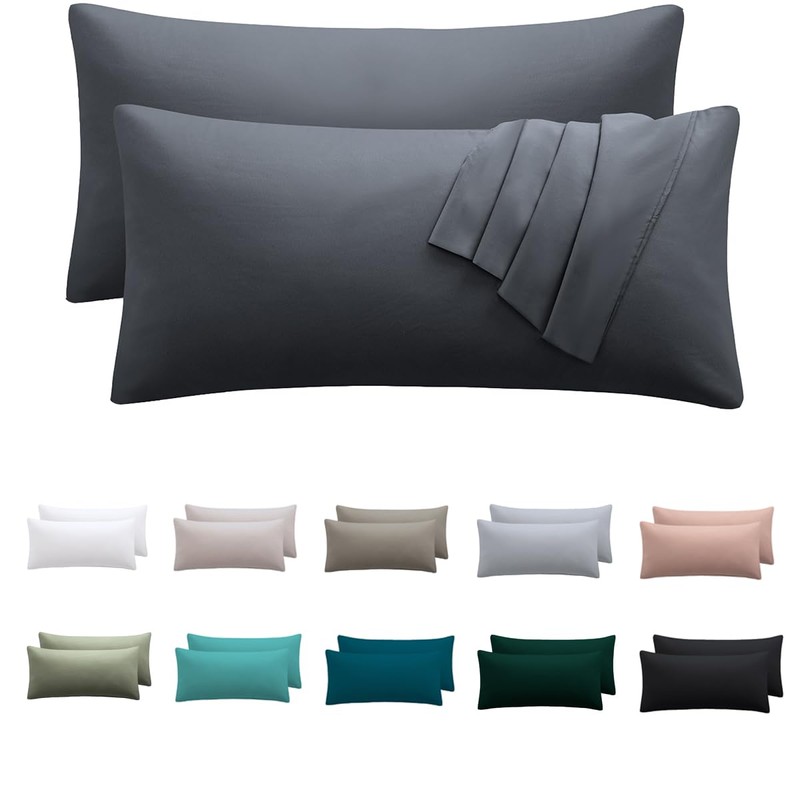 Nesture Cushion Cover 40 x 80 cm, Set of 2 - Pillowcases 40 x 80 cm, Anthracite, 100% Microfibre Cushion Covers with Zip, Soft and Non-Iron