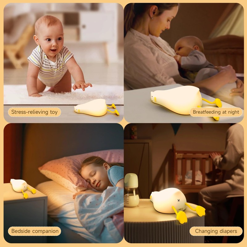 NesveCit NesveCit Cute Lay Flat Duck Night Light, Adorable Touch Night Lamp Silicone Dimmable LED Nightlight for Nursery Rechargeable Bedside Night Lights for Bedrooms Breastfeeding