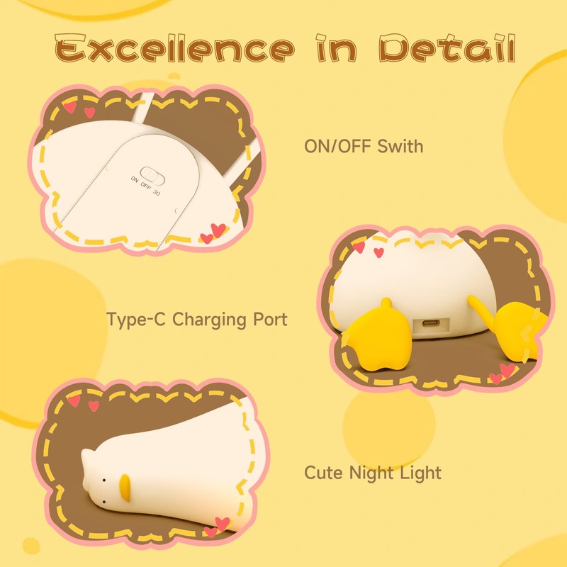 - Lasts Up to 12H, Accompany You to Sleep: Say goodbye to scary monsters under the bed! With the built-in 1200mAh battery that offers up to 12 hours of continuous operation after charging. Let the adorable lay flat duck light to accompany your little ones through the night. No need to fear the dark anymore