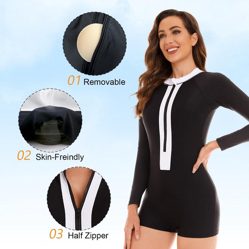 - 【Removable Pads】: Long sleeve bathing suit for women features built-in bra to provide an additional support, perfectly fits your chest curve, and you can remove it and wear your own bra for support.
