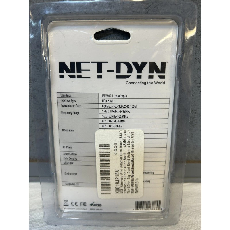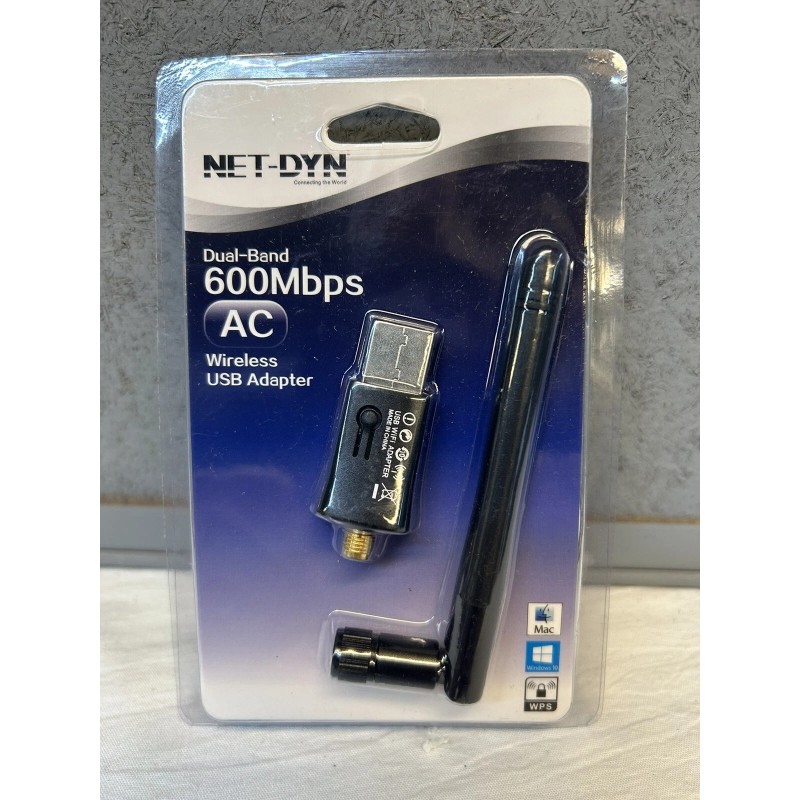 This is a new in the pack, NET-DYN Dual-Band 600MBPS AC Wireless USB Adapter. See pictures for details. If you have any questions just let me know. I will ship these USPS Ground Advantage and the cost will be calculated to your location. I normally ship out with in two business days from the purchase. If you have a concern after you receive your item let me know and we will work it out. As you can see from my feedback score I always try to make sure the transaction goes as it should where you will be happy with your purchase. I only ship inside the USA. I will combine shipping charges but you need to let me know before you pay for anything so I can send you a revised shipping quote. Check out my other listings. Thanks for looking!