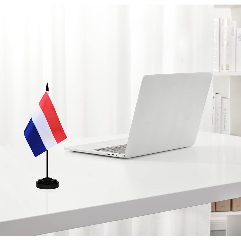 Netherlands Desk Flag Set, 2 Pack Dutch Table Office Flags, Small Mini Desktop Flag With 12" Solid Black Pole, Black Base, Miniature Desktop Flag