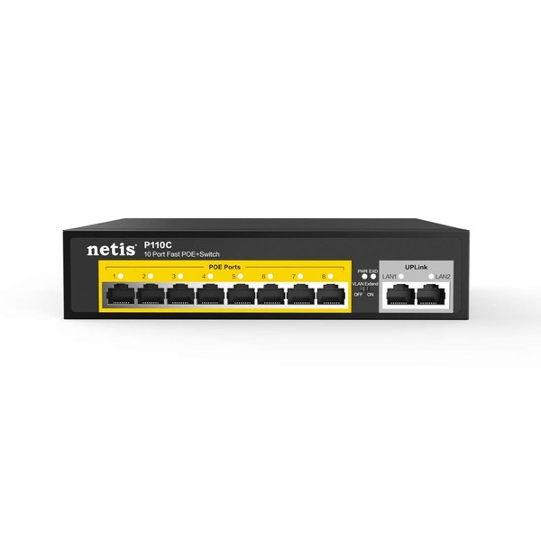 Netis P110C 8 POE+2 Uplink 100M Standard Fast Ethernet POE/POE+ Switch with Plug and Play | IEEE 802.3at/af Compliant Powered Devices (PDs) with Auto MDI/MDIX Function | POE Power Budget of 120 W
