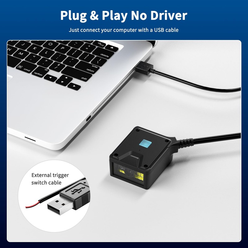 ✔ 5-in-1 Scanning Modes – Supports automatic sensing, continuous scanning, key trigger, external trigger, and command trigger, making it ideal for logistics sorting, factory assembly lines, and automated systems.