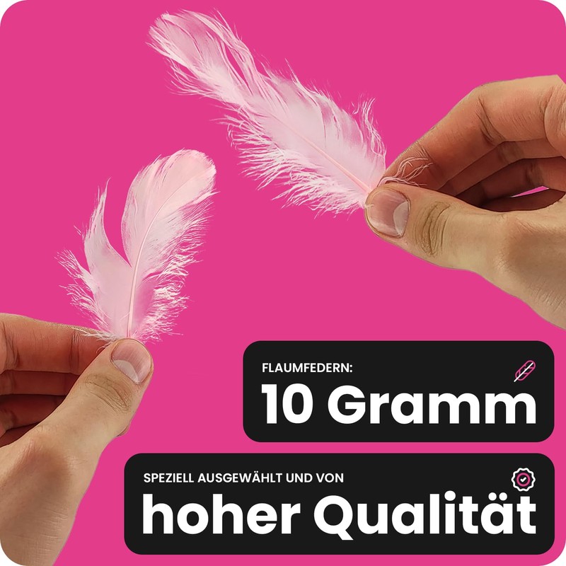 • Technical data: The feathers are dyed pink. The weight is 10 g. Specially selected and high quality.