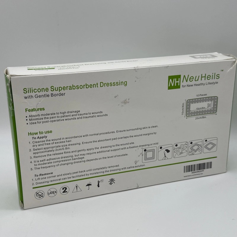 NeuHeils Silicone Super Absorbent Wound Dressing 4''x8'' 10 Packs, Absorbent Pad