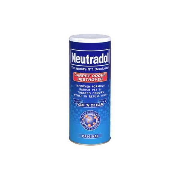 eutradol Carpet Odour Destroyer will clean and freshen your carpet getting rid of all pet, tobacco and other unpleasant odours. Neutradol was the first odour destroyer to be introduced and its unique formula has not been equalled. Years after its launch laboratory tests confirm it is still the best odour destroyer available on the market.