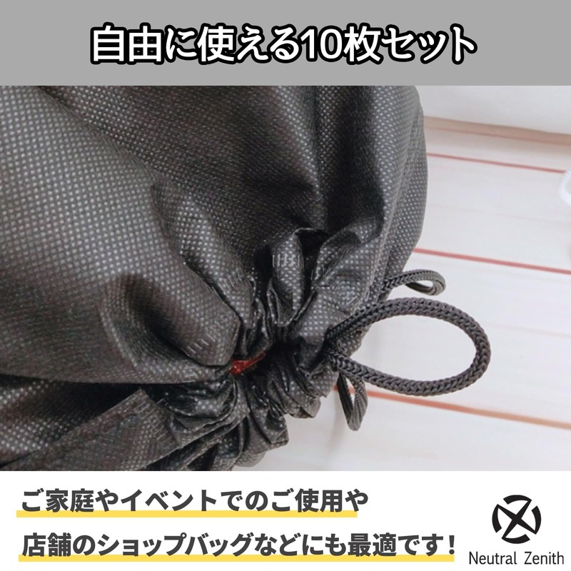 Neutral Zenith Non-Woven Storage Bag, Drawstring Bag, Storage Bag, Non-woven Fabric, Storage, Wrapping, Storage Bag, Set of 10 (Black, 15.7 x 19.7 inches (40 x 50 cm)